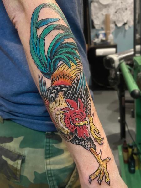 This full color, illustrative image is completed on the outer forearm by Noah Nixon.